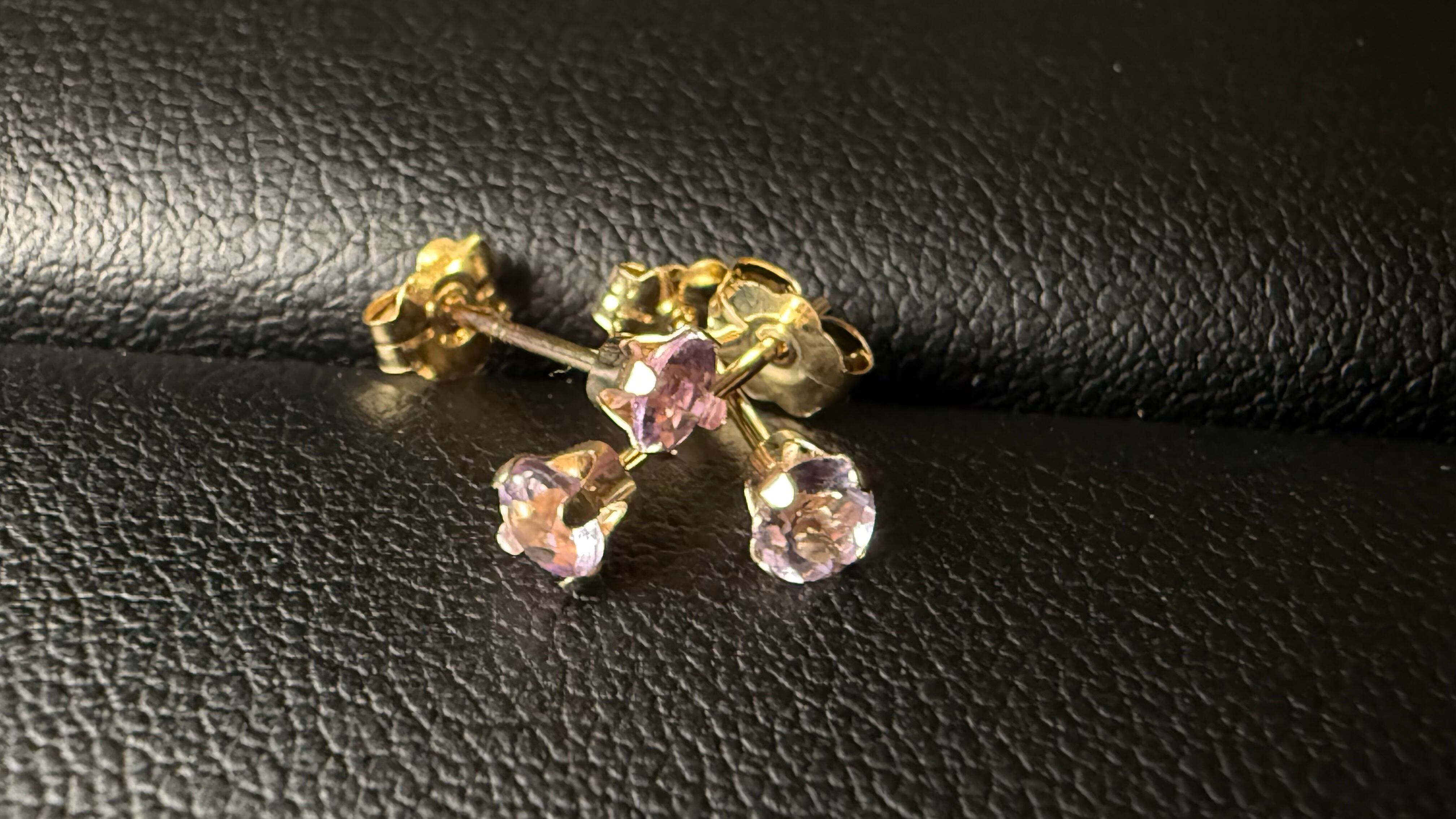 (両耳用)アメジスト 3ミリ 10k 天然石ラウンドピアス